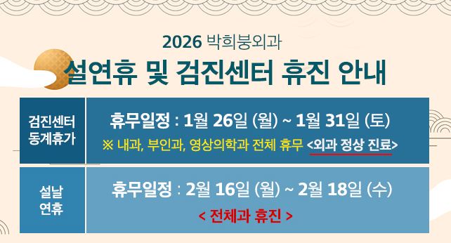 2026년 박희붕외과 프리미어 검진센터 설연휴 및 검진센터 휴진안내 입니다.